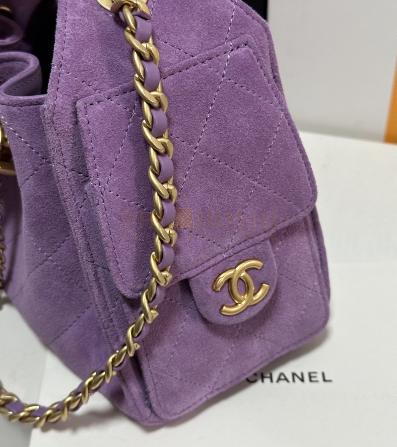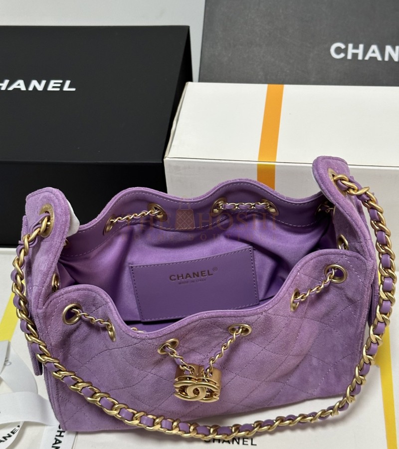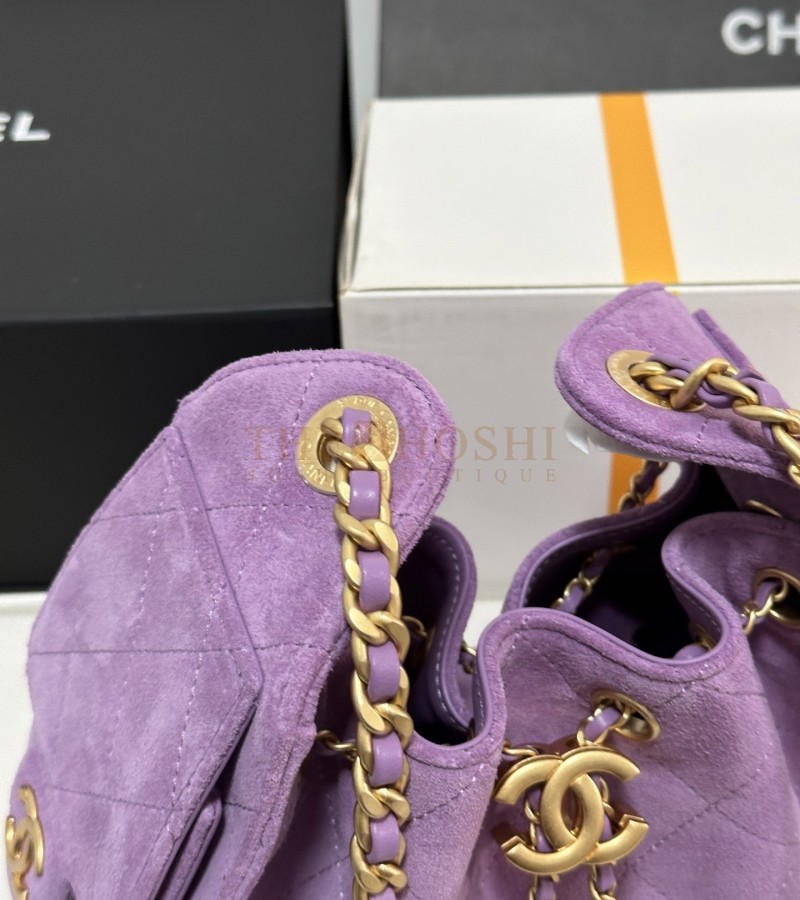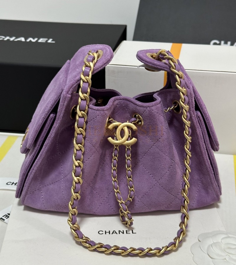 CHANEL 25C AS5631 HOBO DRAWSTRING BAG PURPLE SUDE LEATHER WITH GOLD CHAIN 22*12.5*20CM MASTER QUALITY