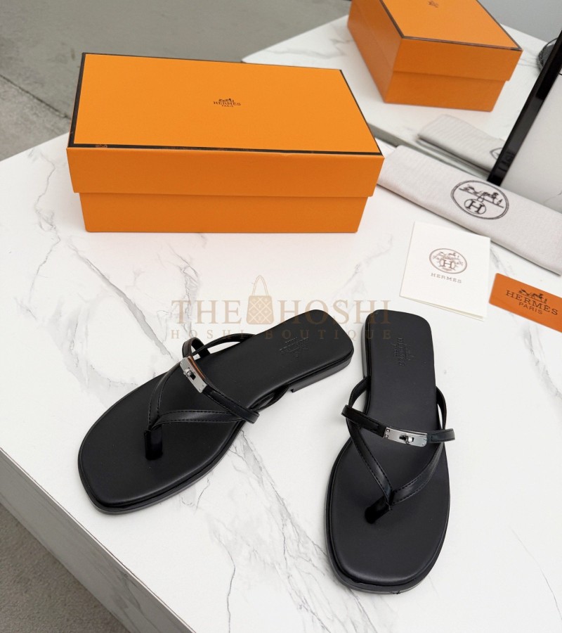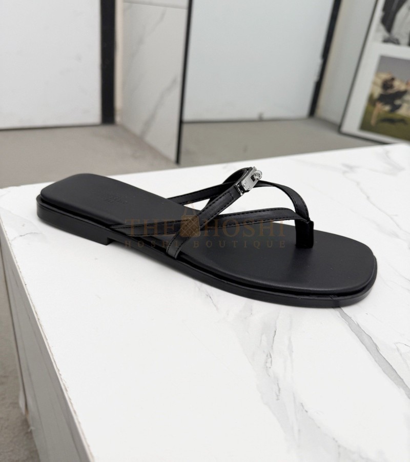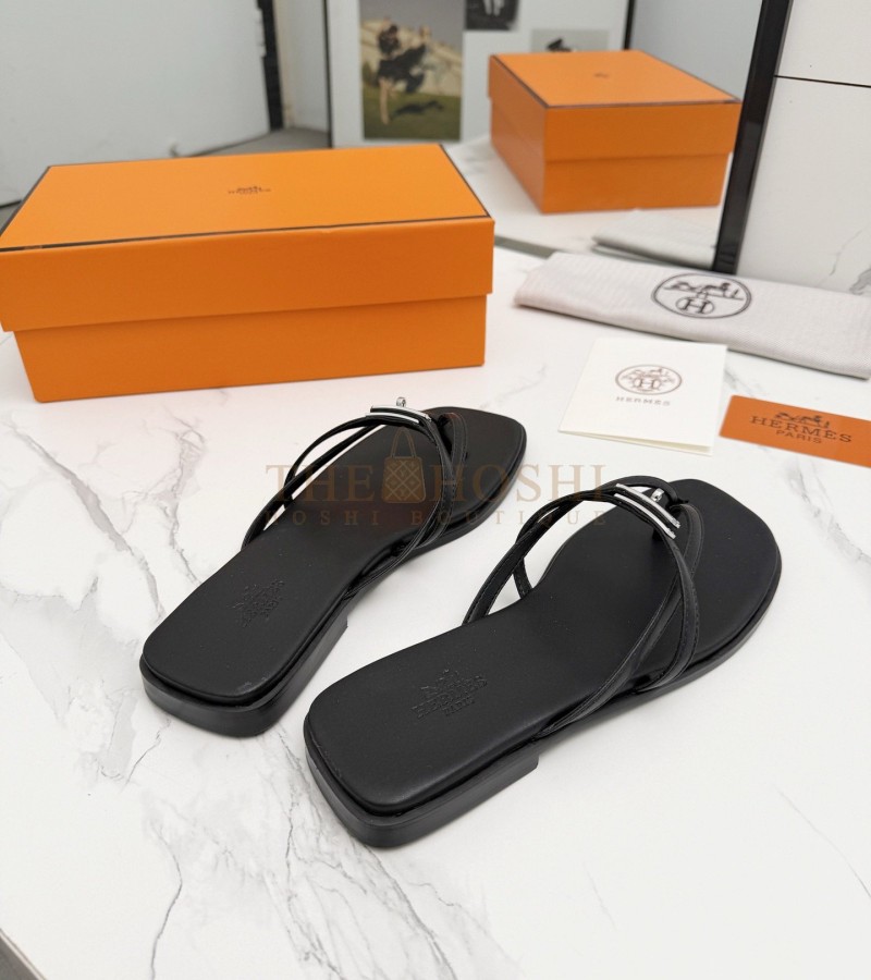 HERMES MISS SANDALS BLACK BOX CALFSKIN LEATHER MASTER QUALITY