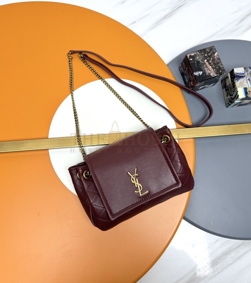 YSL MINI NOLITA SHOULDER BAG QUILTED LAMBSKIN & GOLD-TONE CHAIN 18×13×6CM