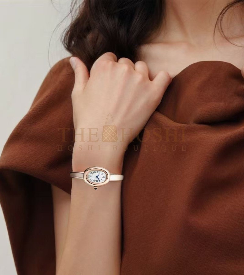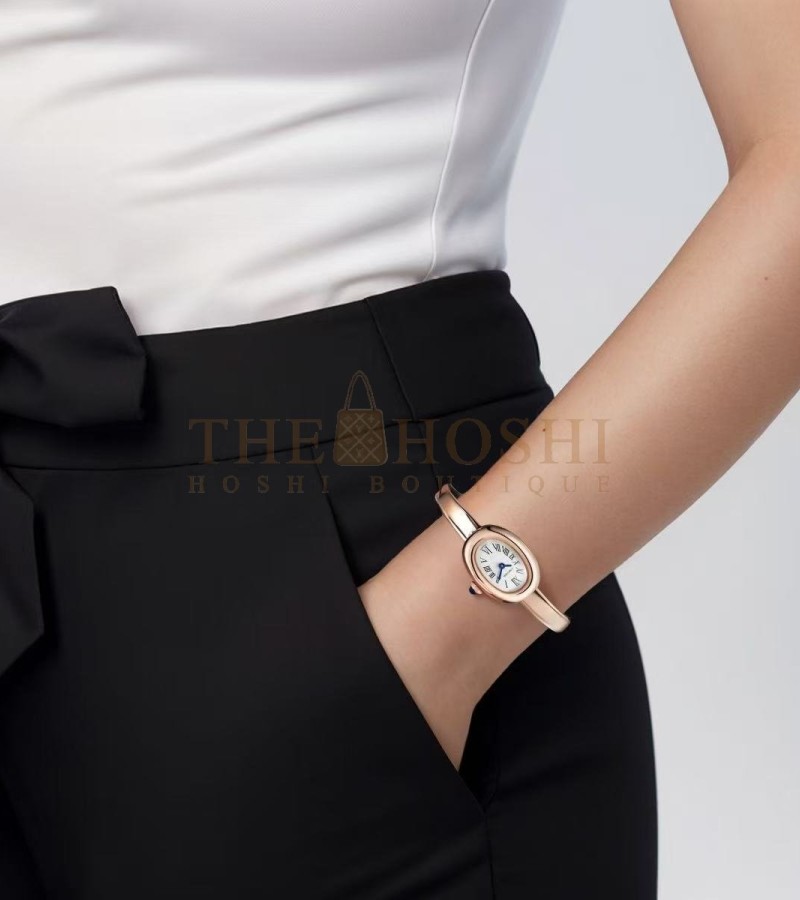 CARTIER WOMEN'S QUARTZ WATCH BAIGNOIRE WHITE DIAL SIZE16 ROSE GOLD MASTER QUALITY